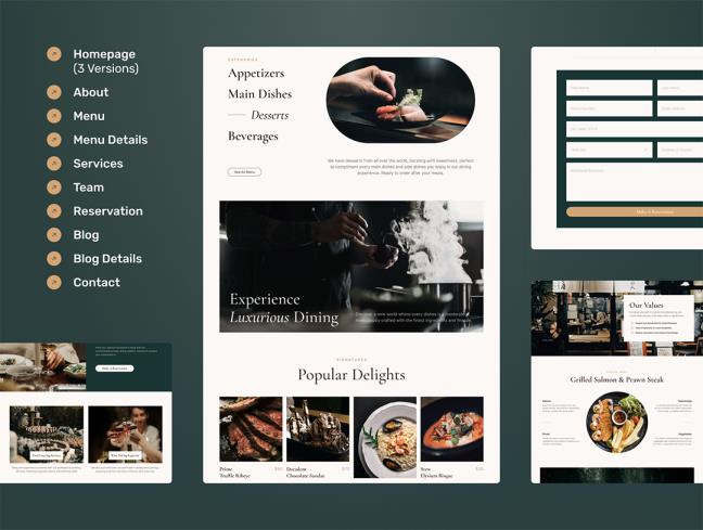12页优雅的餐厅网站UI设计用户界面模板figma格式