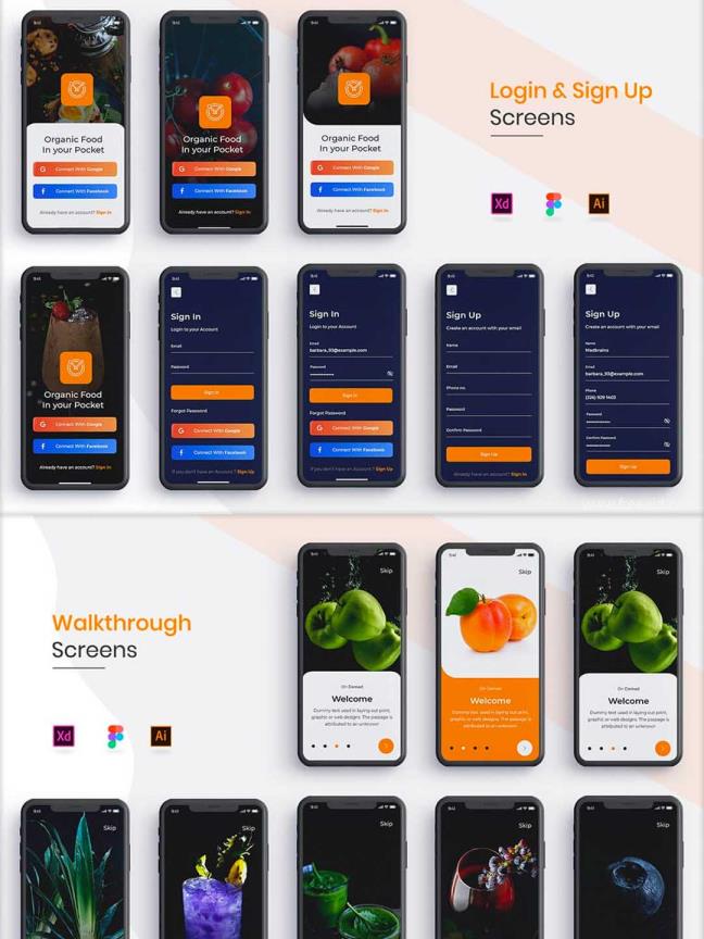 高端绿色有机水果电商APP UI资源素材xd源文件