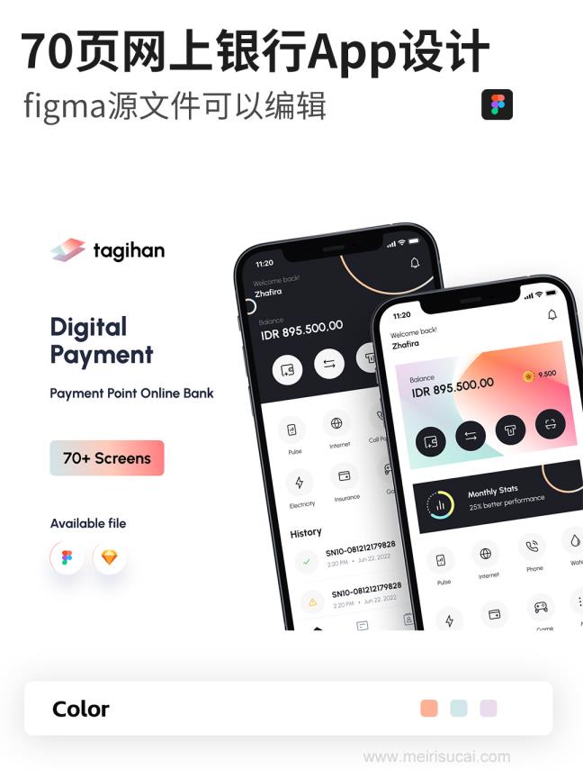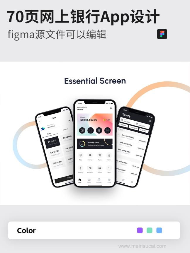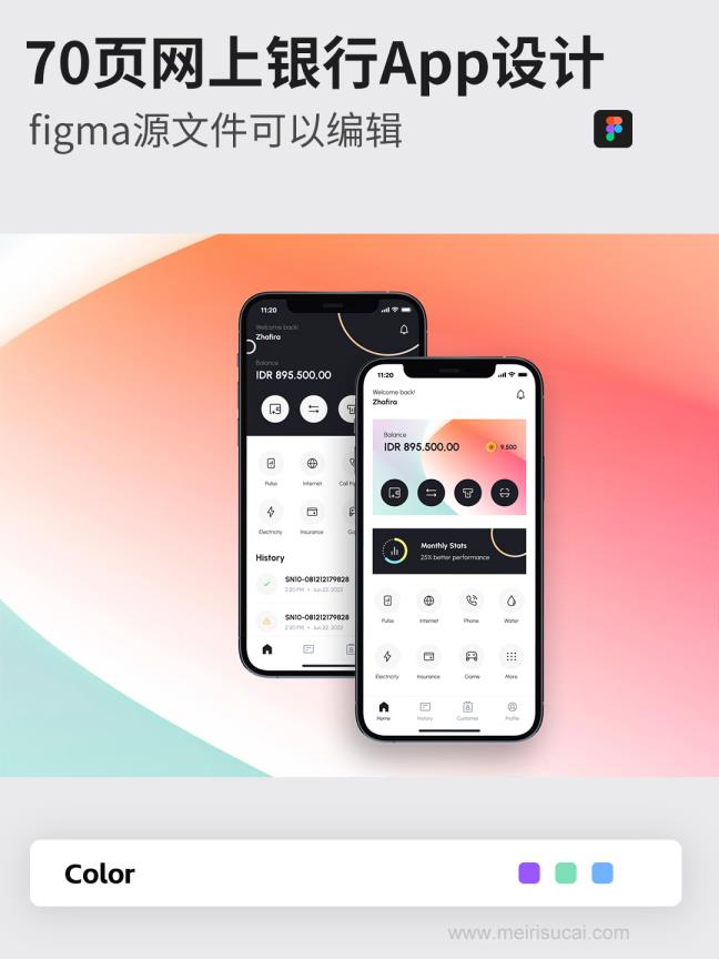 70页网上银行,账单App设计figma源文件