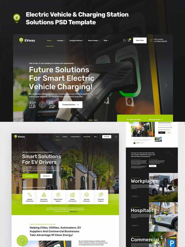 31个页面,智能汽车,智能电车,品牌官网和充电桩产品官网UI设计模板 PSD源文件