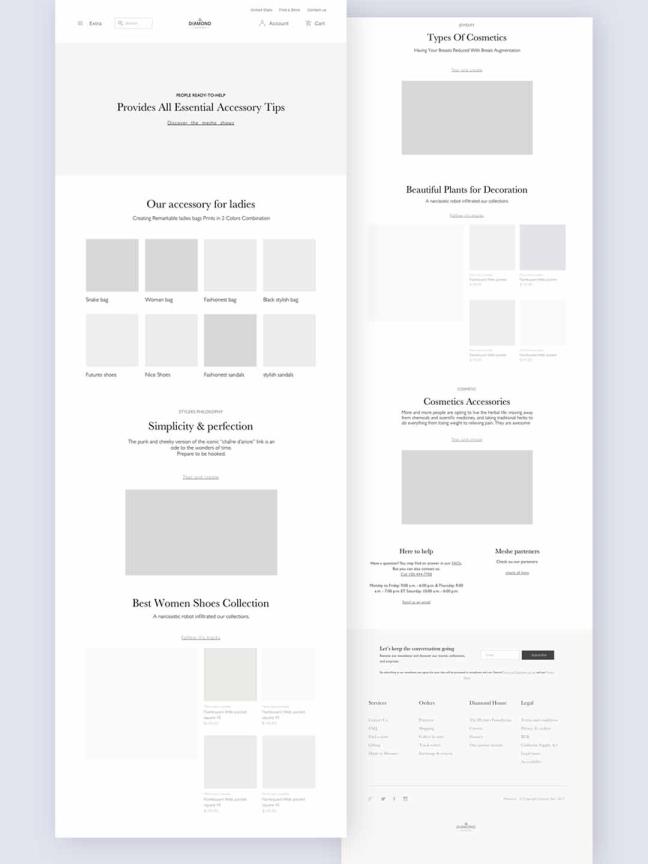 钻石珠宝,时尚女性购物网站原型图,电商着陆页sketch源文件