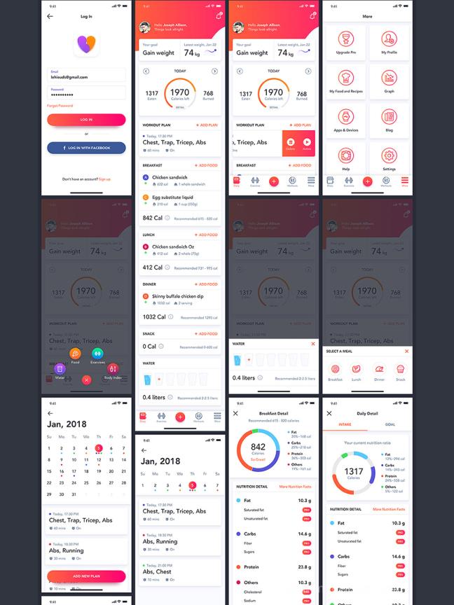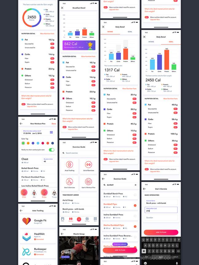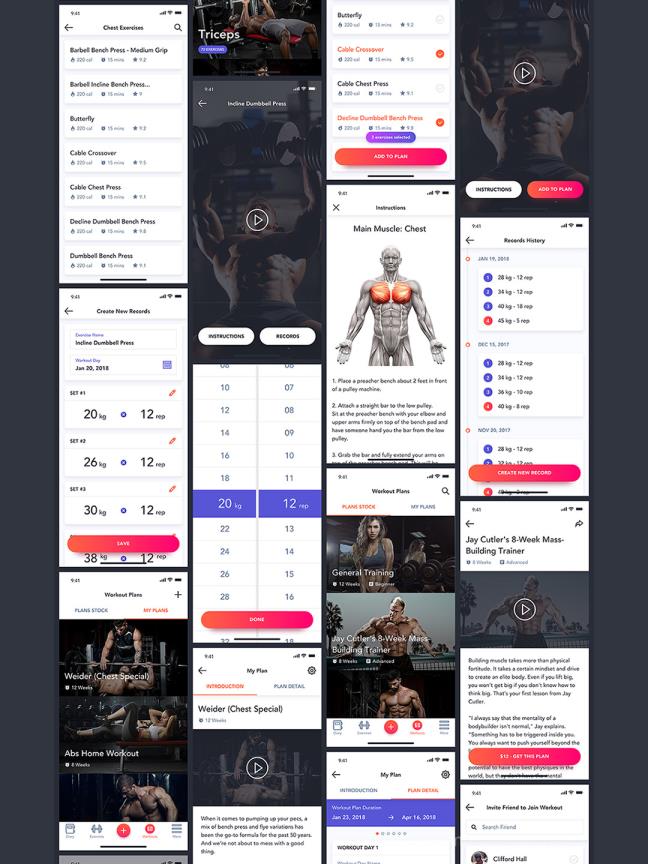 80页健身训练和医疗保健app设计sketch,xd,figma格式