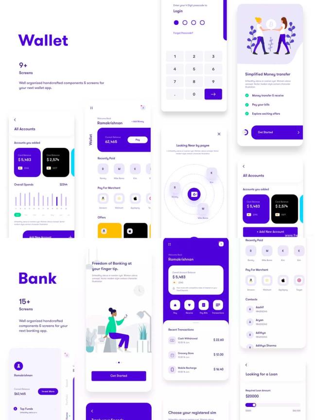 财务app UI资源下载,金融财务应用UI素材下载,银行app UI xd源文件