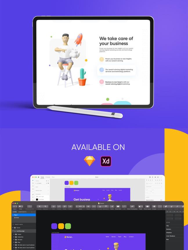 3D风网页设计 | 企业网站设计Sketch、XD模板