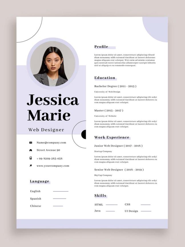 小清新浅紫色个人简历矢量源文件ai,eps格式