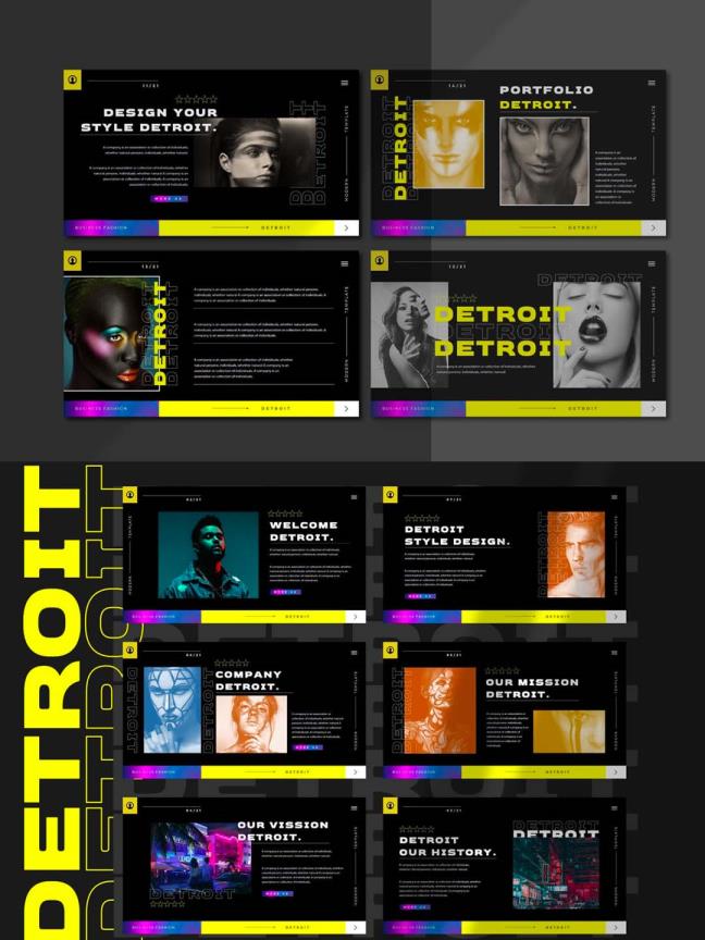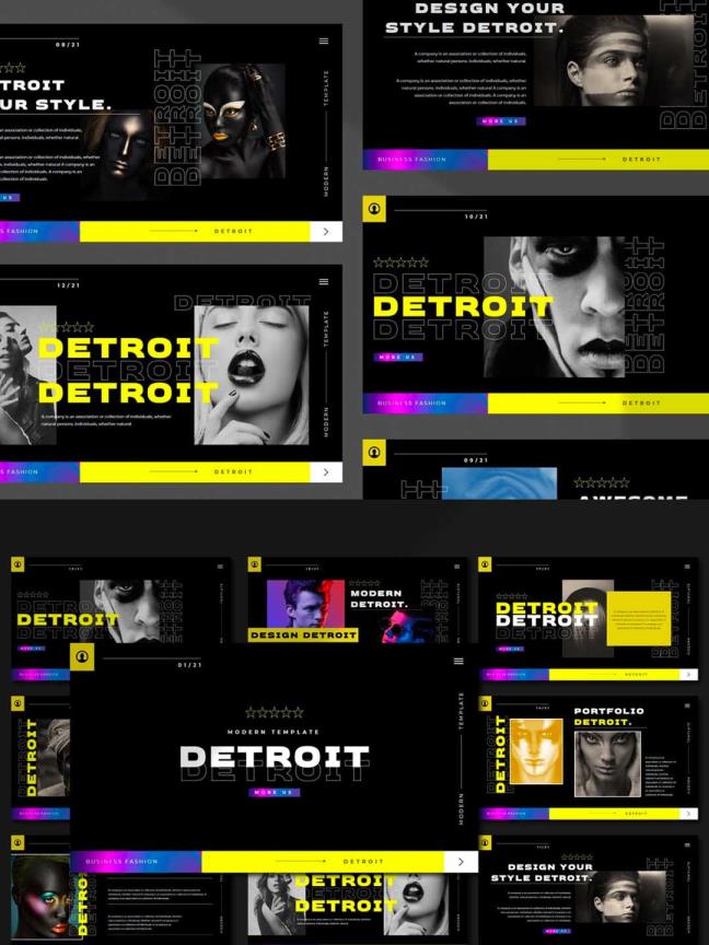 今年流行的大厂作品包装视觉风格ppt模板,大厂设计师作品集ppt模板下载