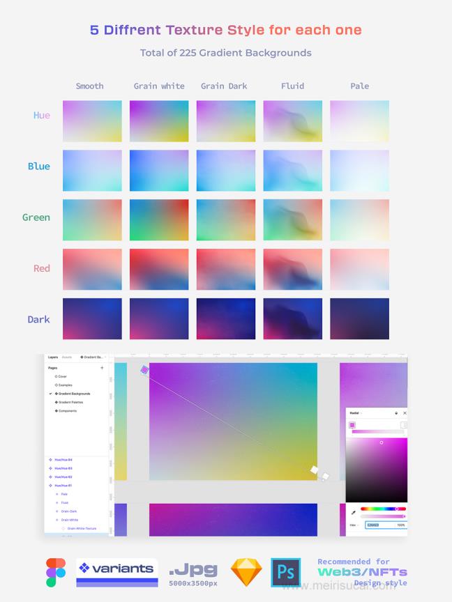 Web3渐变背景 | 45个可编辑渐变背景的集合Figma、Sketch 、 PSD、jpg格式