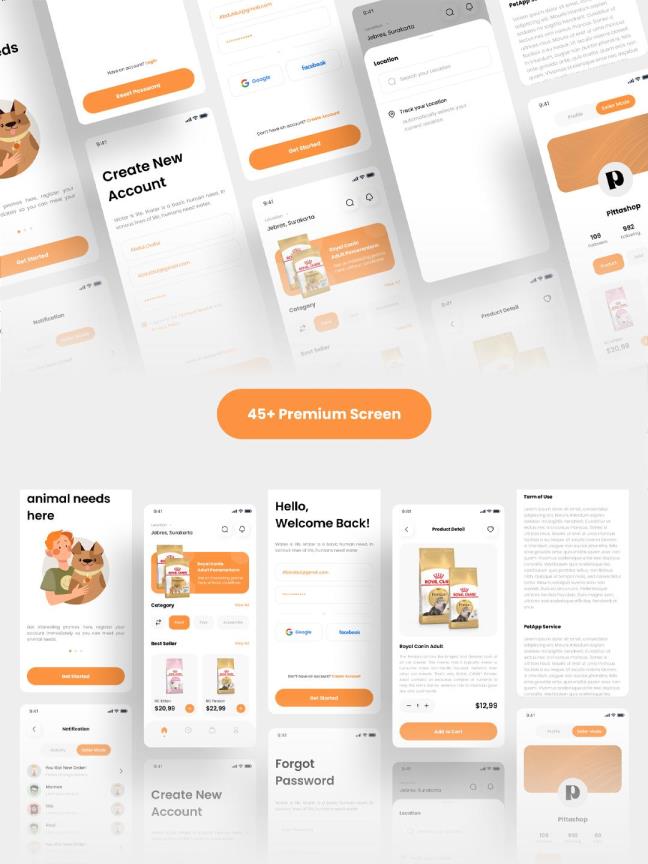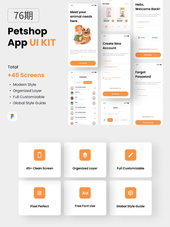 45页萌宠APP设计源文件 | UI设计Figma素材