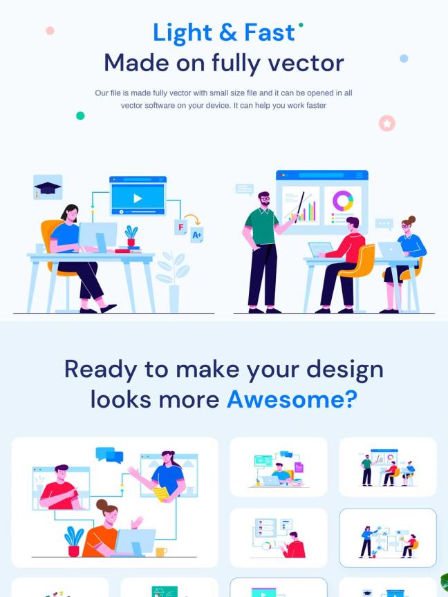 在线学习场景、在线办公场景运营插画资源库一套,含:fig,sketch,ai