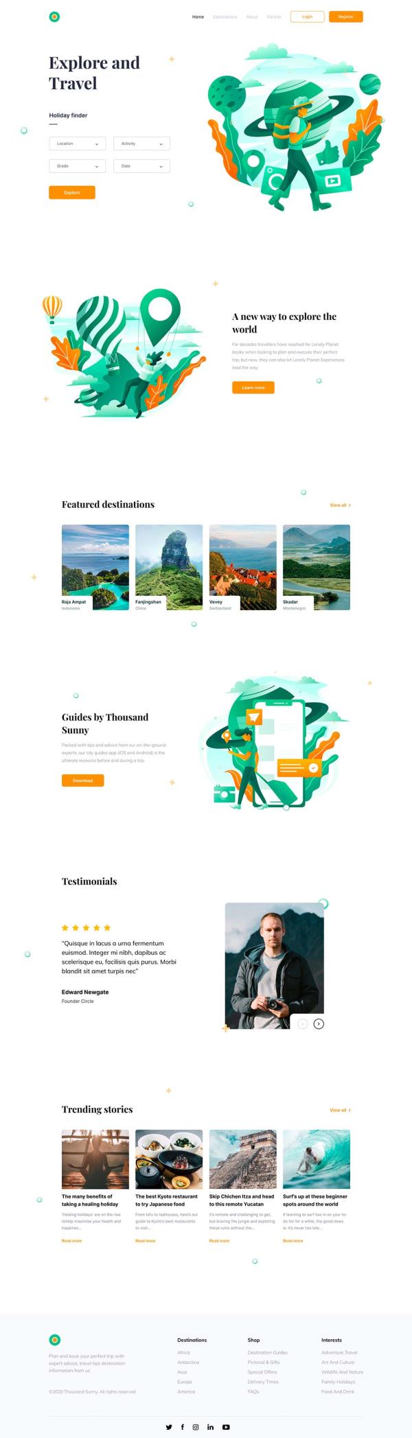 Figma 的旅游网站 旅游和旅游项目的优雅和干净的着陆页设计。
