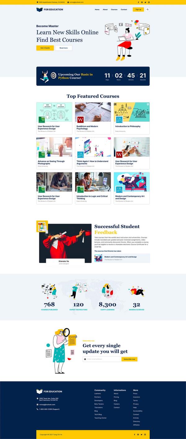 用于教育/在线学习项目的优雅干净的登录页面模板,Adobe XD 登陆页面