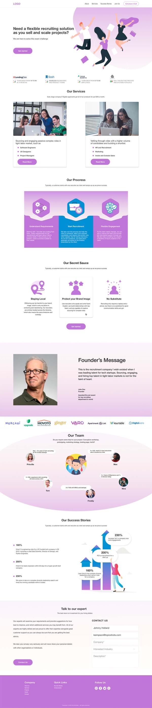 用于招聘服务的优雅简洁的登陆页面设计。现代和干净的外观。sketch格式