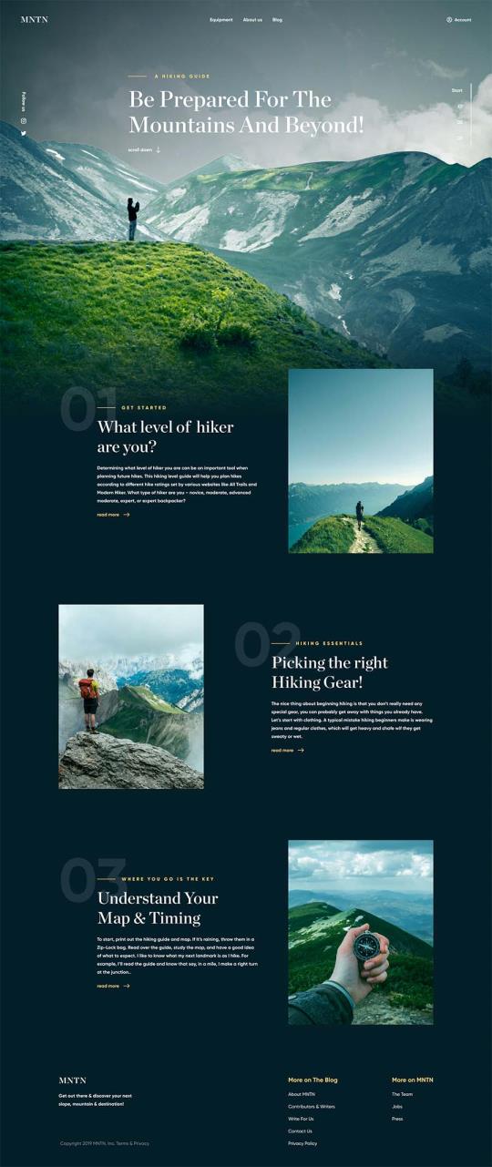 Figma 的着陆页 一个关于远足和旅行的博客的干净的登陆页面设计。