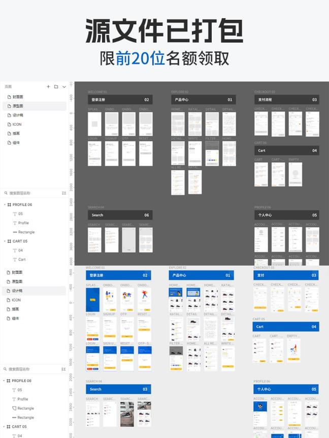 电商UI设计源文件 | 电商APP原型图设计稿Figma、Sketch、XD 设计素材 2025-04-25 多格式 44页UI高保真原型图和设计练习稿,共6大类,包含登录注册、搜索、产品中心、个人中心、支付流程等; 源文件格式:Figma、Sketch、XD 阅读全文 资源下载下载价格0.8 素材币VIP免费升级VIP立即购买