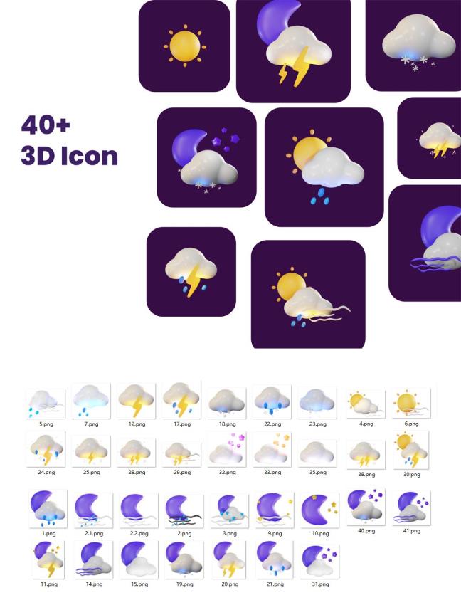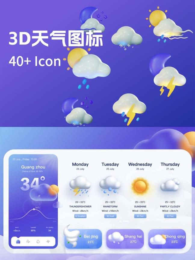 3D天气icon(图标) | 天气APP界面设计 设计素材 2025-04-24 ICON 3D天气图标,可用于天气APP界面设计 格式:png 阅读全文 资源下载下载价格1.2 素材币VIP免费升级VIP立即购买