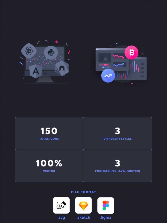 150个科技风数字产品主题相关的矢量图表icon资源