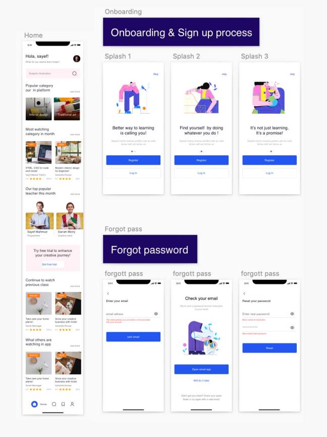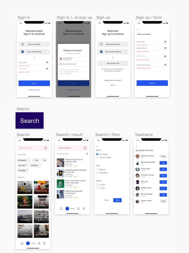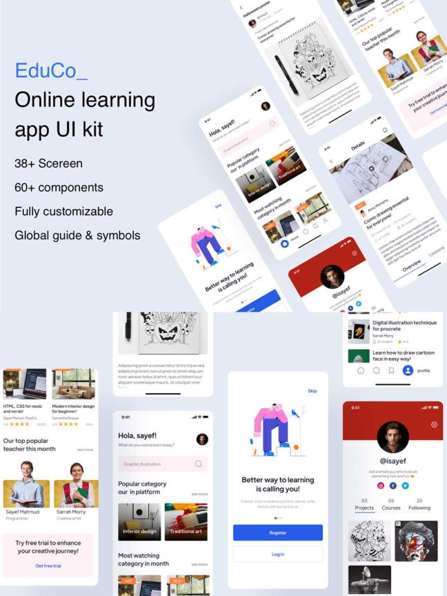 在线课程移动应用app, Sketch文件,包括超过 35页面。