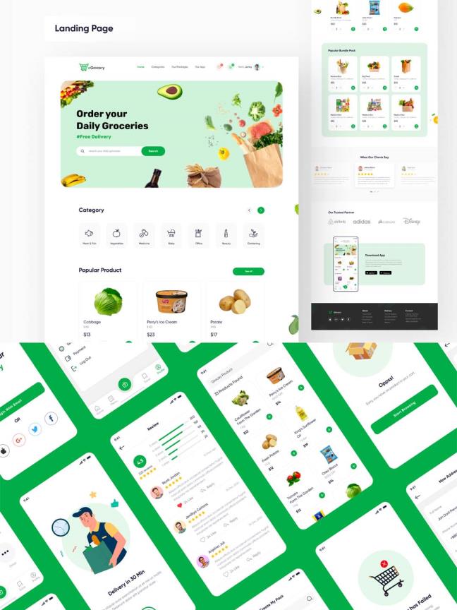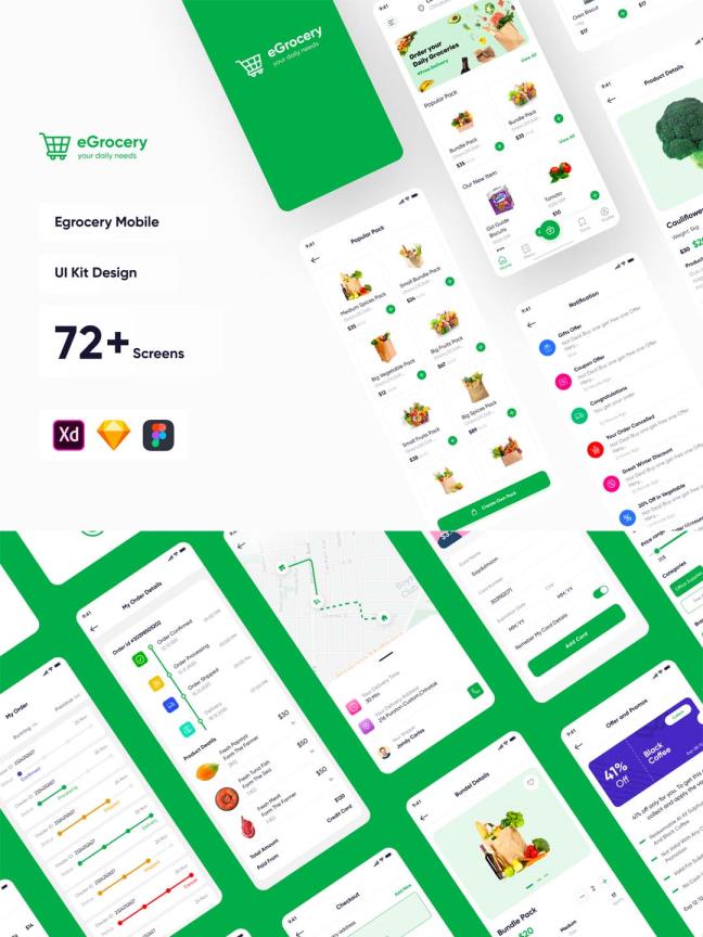 72页买菜,社区团购,蔬菜水果外卖app UI素材sketch,fig,xd源文件