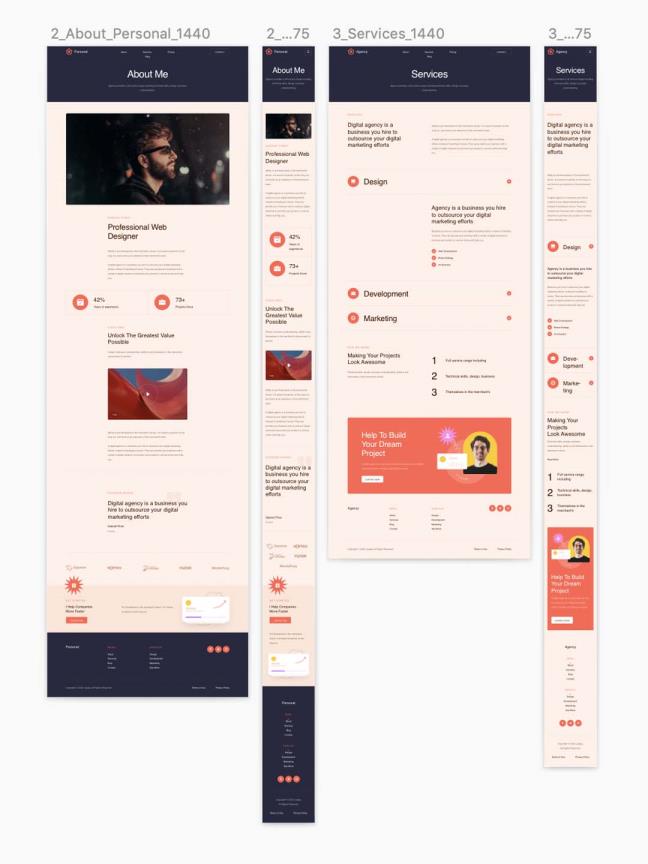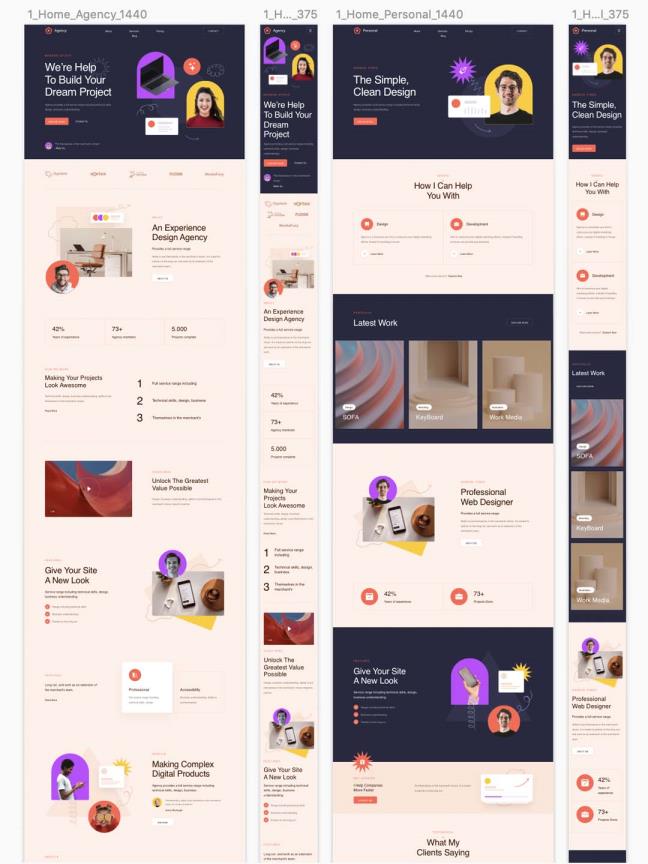 一整套适合设计师,设计公司的响应式着陆页,网站设计sketch文件