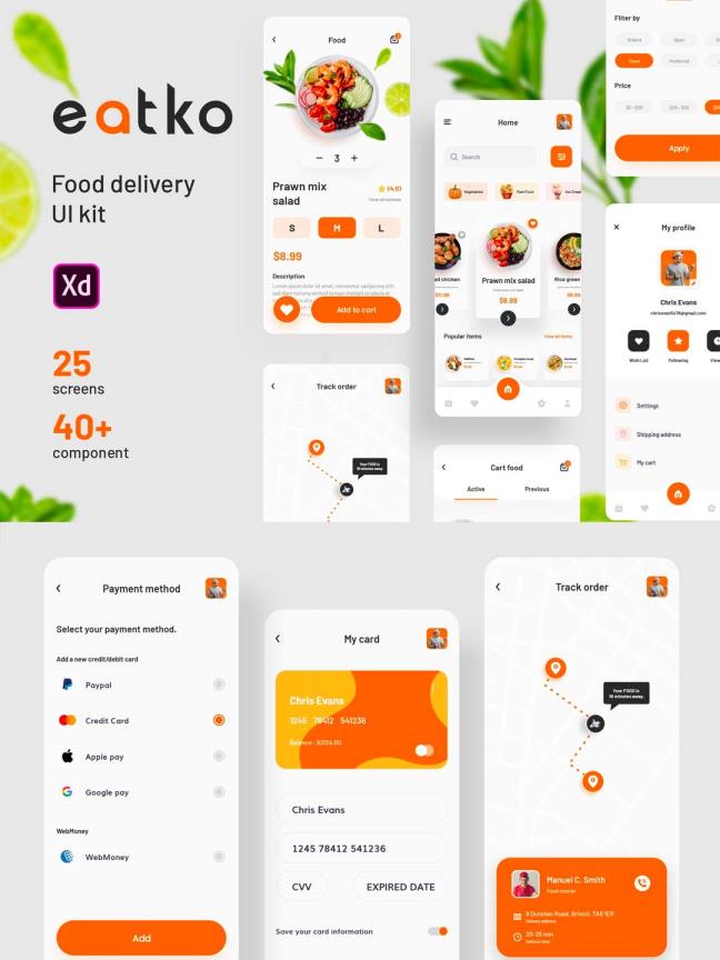 25页美食,社区买菜,生鲜美食APP UI素材xd源文件