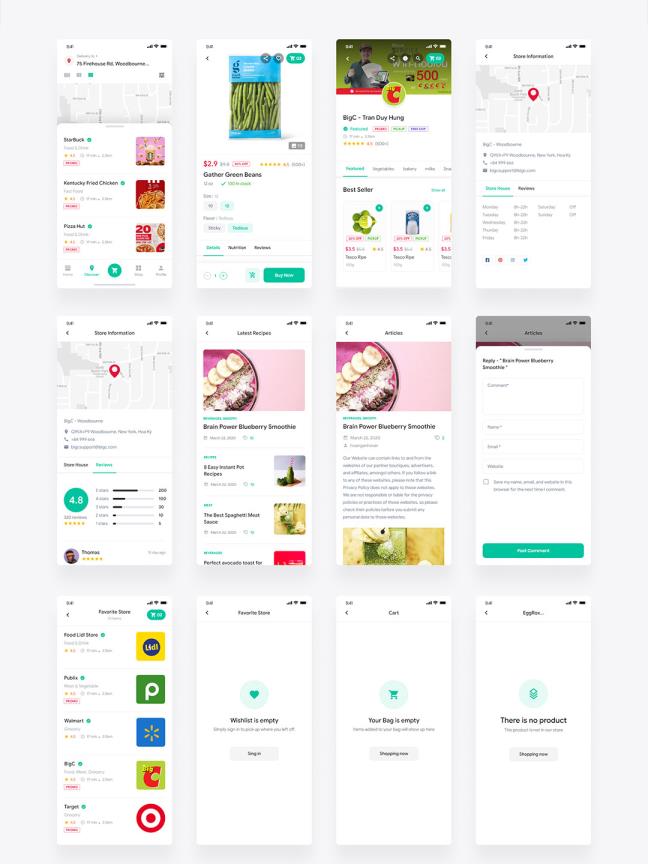 50页的插画风电商APP UI Figma, Sketch, Illustrator源文件