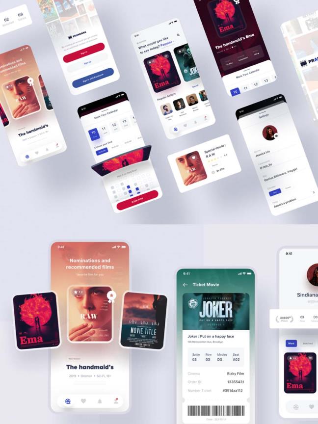 用于电影、选择座位和订购电影票的概念APP源文件sketch源文件