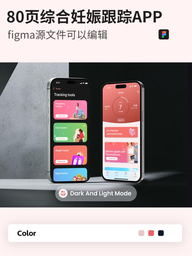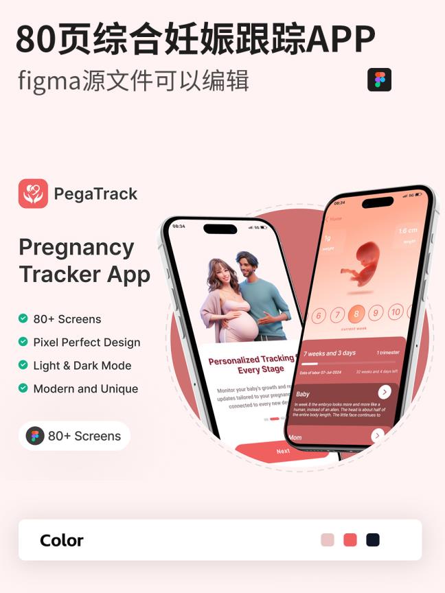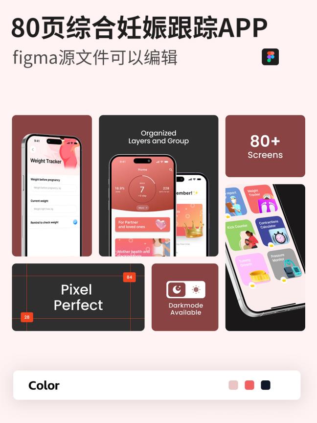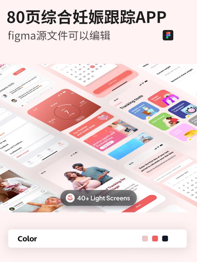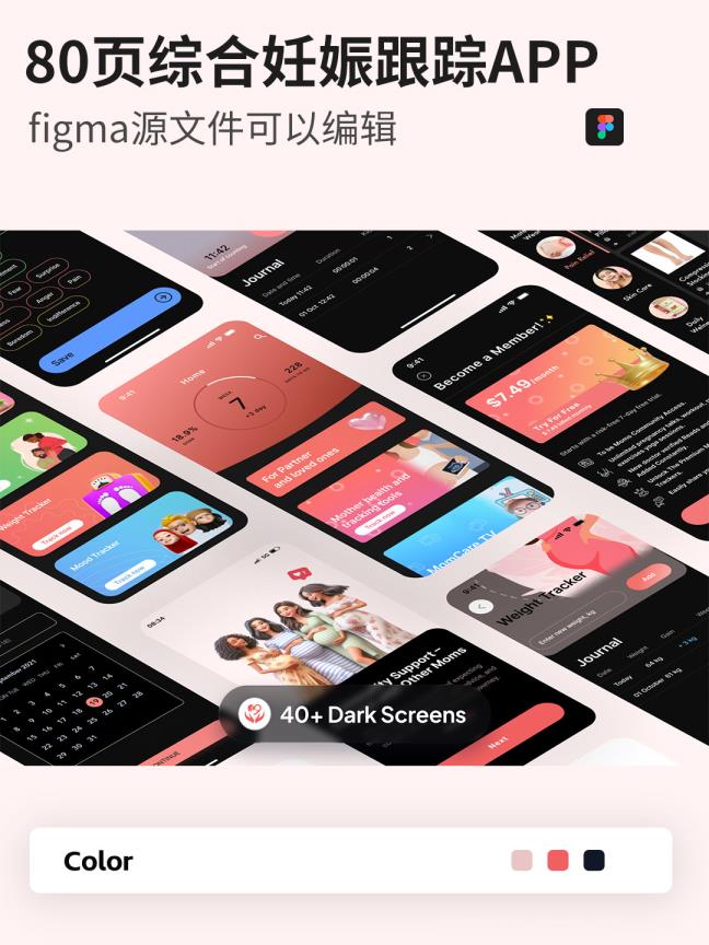 80页明暗设计综合妊娠,孕期跟踪APP UI设计figma源文件