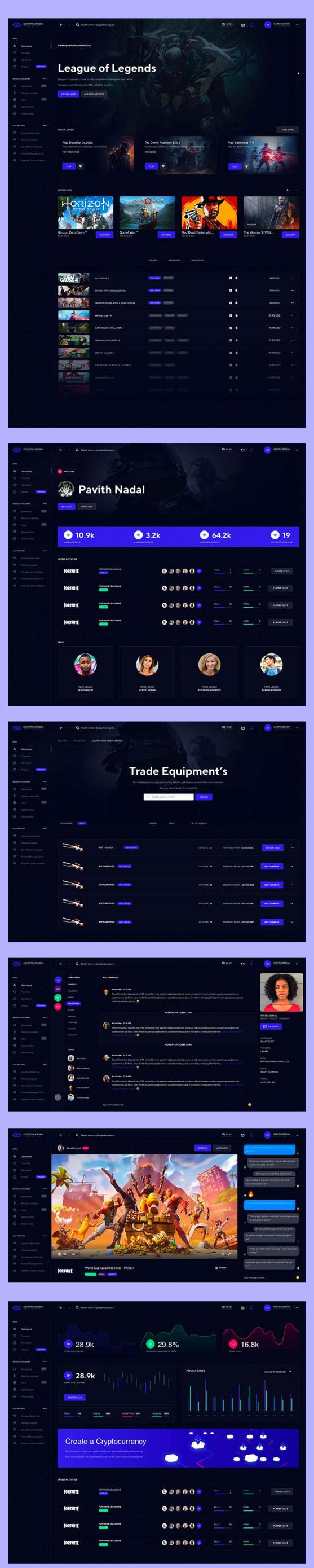 暗色系游戏应用app展示界面、暗色系电影应用app界面sketch下载