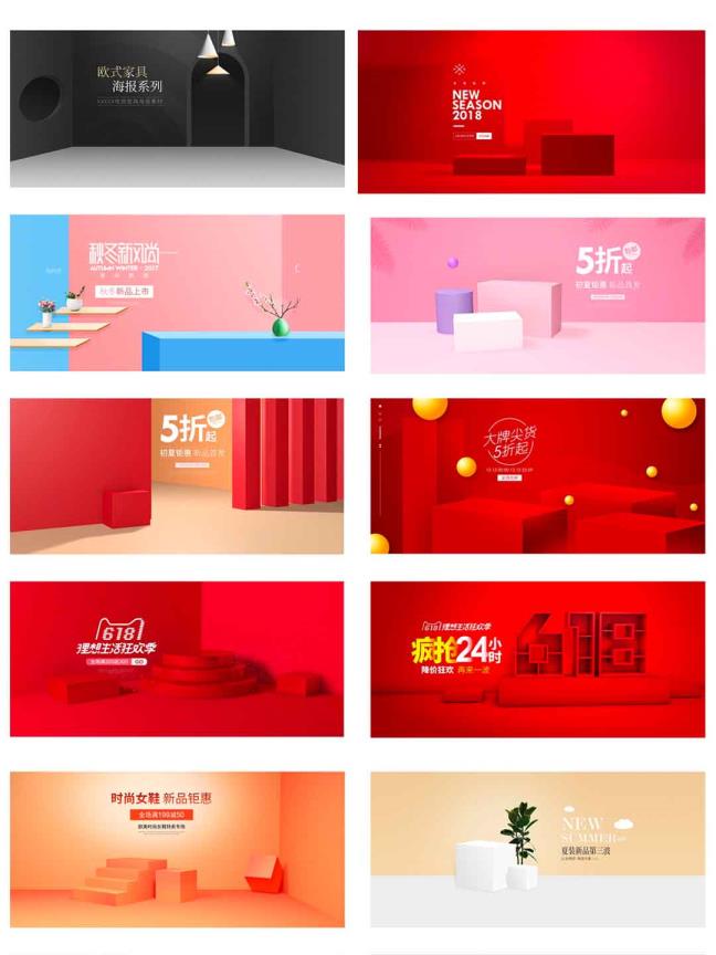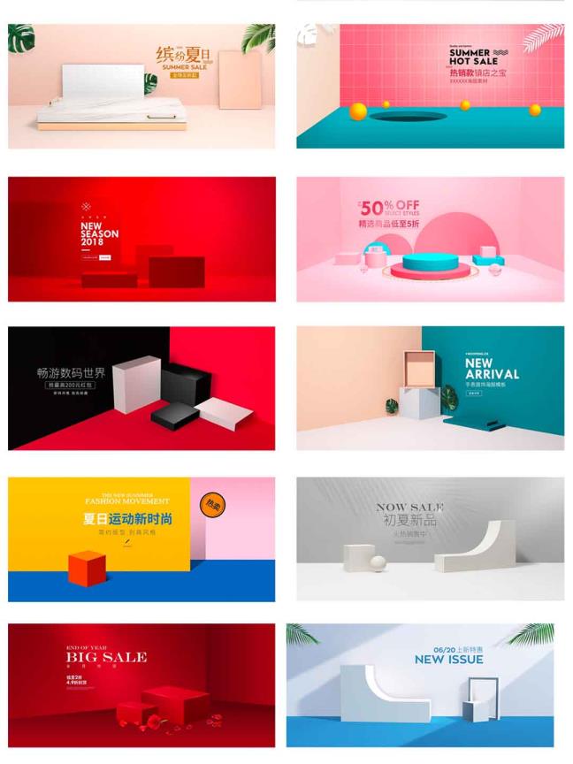 137款电商banner、产品展示C4D模型banner展示psd设计源文件下载