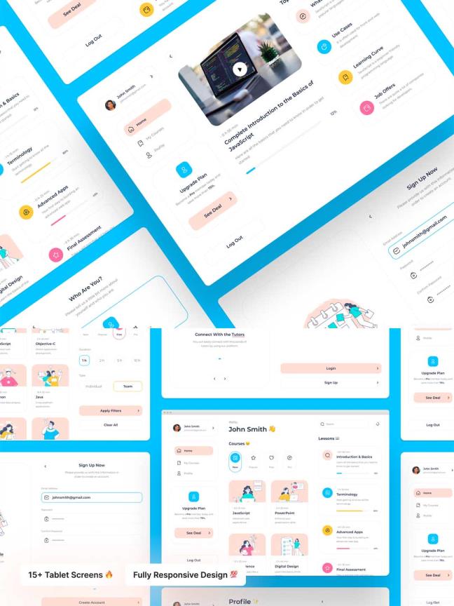 25页在线教育,在线学习网页UI资源下载sketch、figma源文件