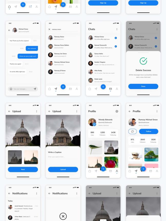 一套完整的社交类UI资源下载,图片社交UI源文件,UI素材figma源文件下载