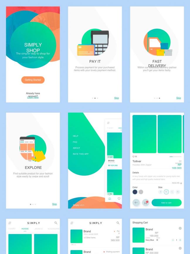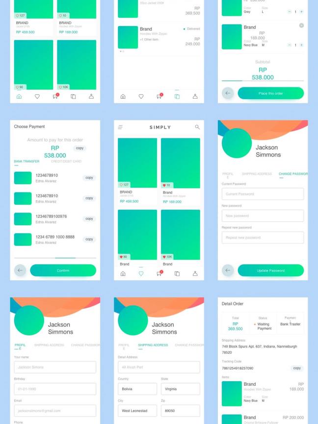 全套APP高端电商清新多界面时尚购物平台UI界面、UI kit sketch源文件下载