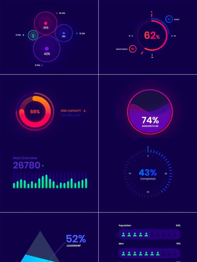 50个大屏数据可视化图标psd源文件,大屏可视化图标资源下载