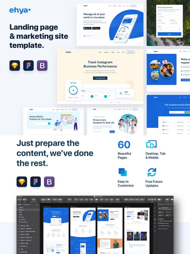 1G多60个网页设计模板sketch/figma/html源文件下载
