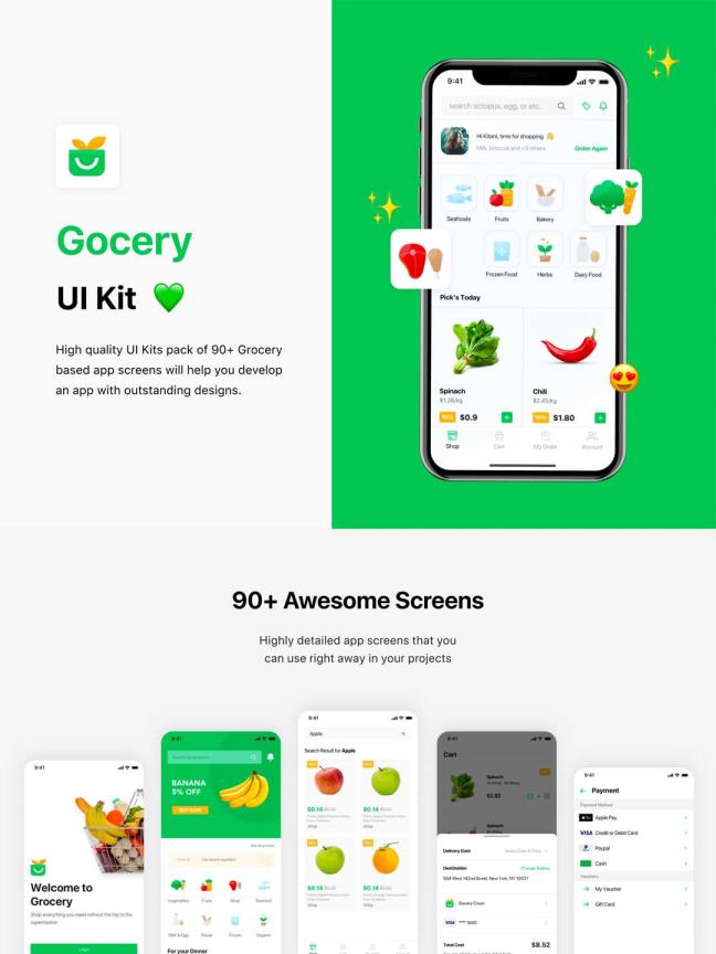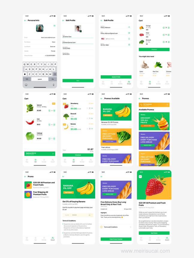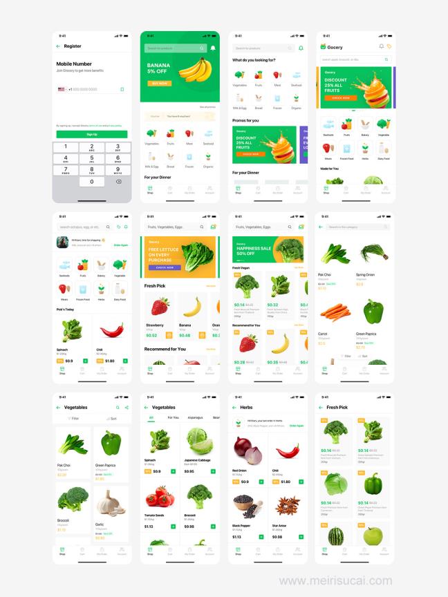 95页页水果,蔬果超市,卖菜App UI sketch,figma源文件
