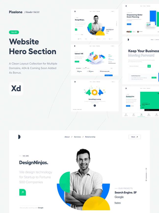 8个高端品牌网站英雄主视觉UI 设计xd源文件