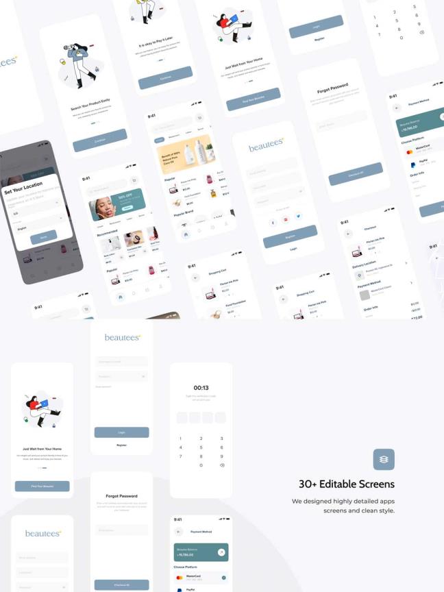 35页女性美容,美容美业APP UI设计 xd、sketch 、figma源文件
