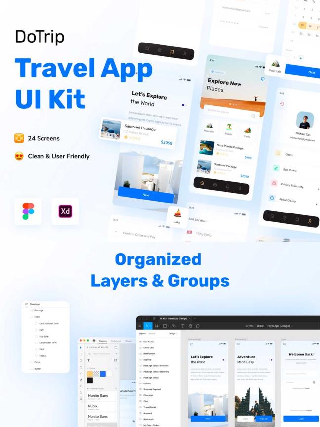 30页简约航空运输APP UI源文件sketch,xd,figma,studio下载