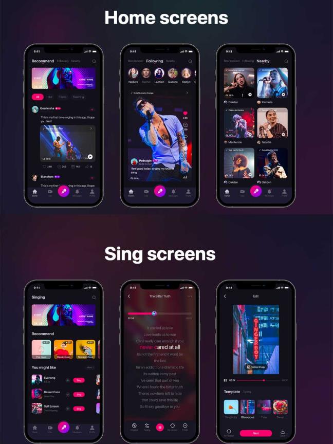 71页社交类K歌,短视频app UI设计sketch,xd,figma源文件 PS素材分享 2025-03-20 多格式 社交卡拉OK唱歌移动应用程序iOS UI套件将帮助您为您正在处理并准备使用的K歌App应用程序创建原型。将加速和促进您的设计过程,并帮助您获得出色的体验。所有组件都是完全可定制的。 可以通用于短视频APP UI界面设计、娱乐直播APP UI界面设计、图片社交app、视频社区APP 界面设计等,包含sketch、xd、figma三种格式的源文件,超级推荐! 阅读全文 资源下载下载价格1.2 素材币VIP免费升级VIP立即购买