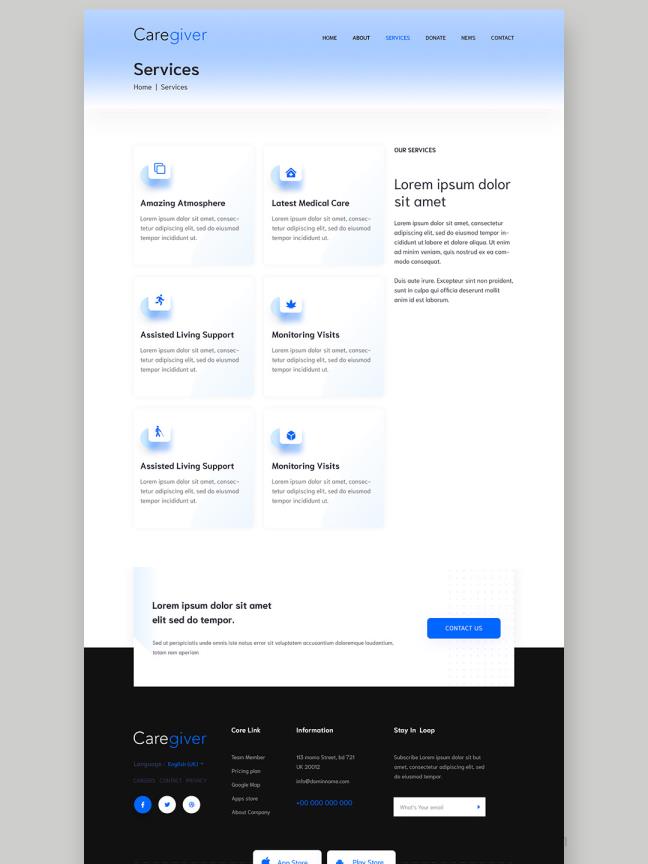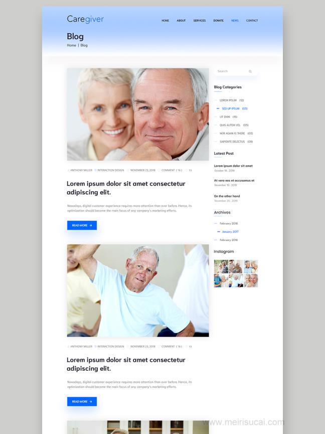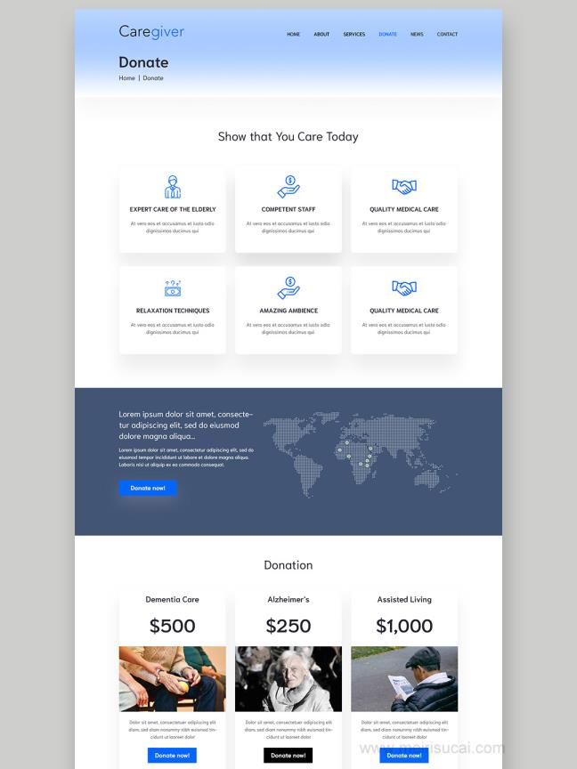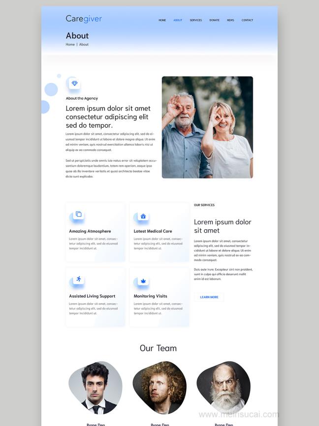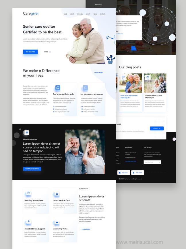 6页养老服务,养老院网站设计psd源文件