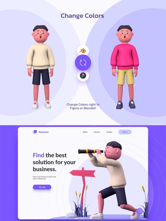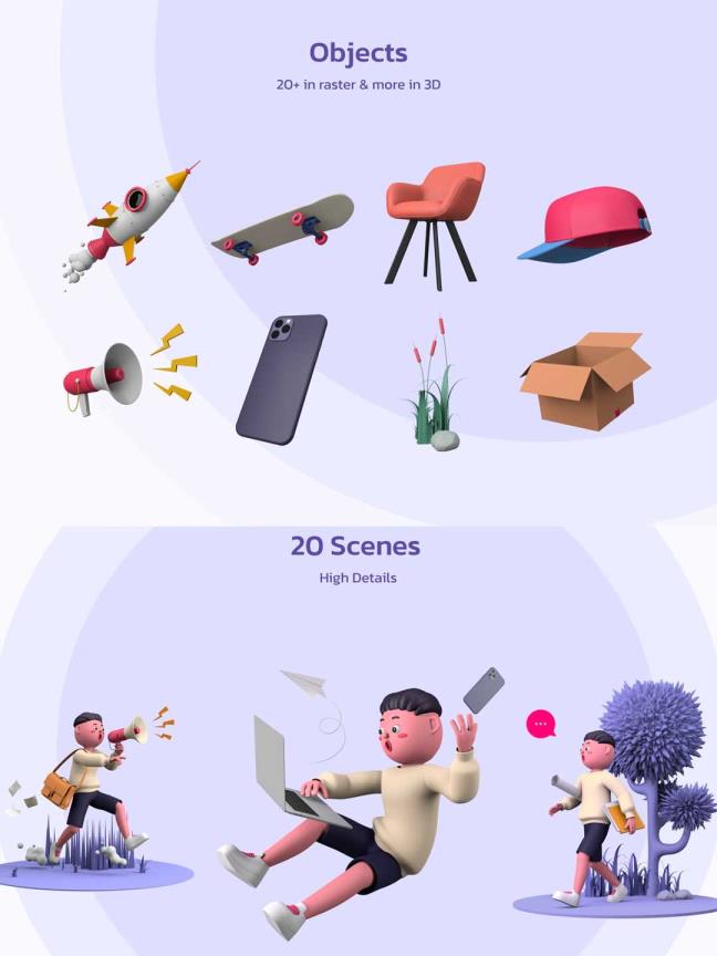 1G多3D人物角色插画素材源文件下载,3D插画组件blender原文下载