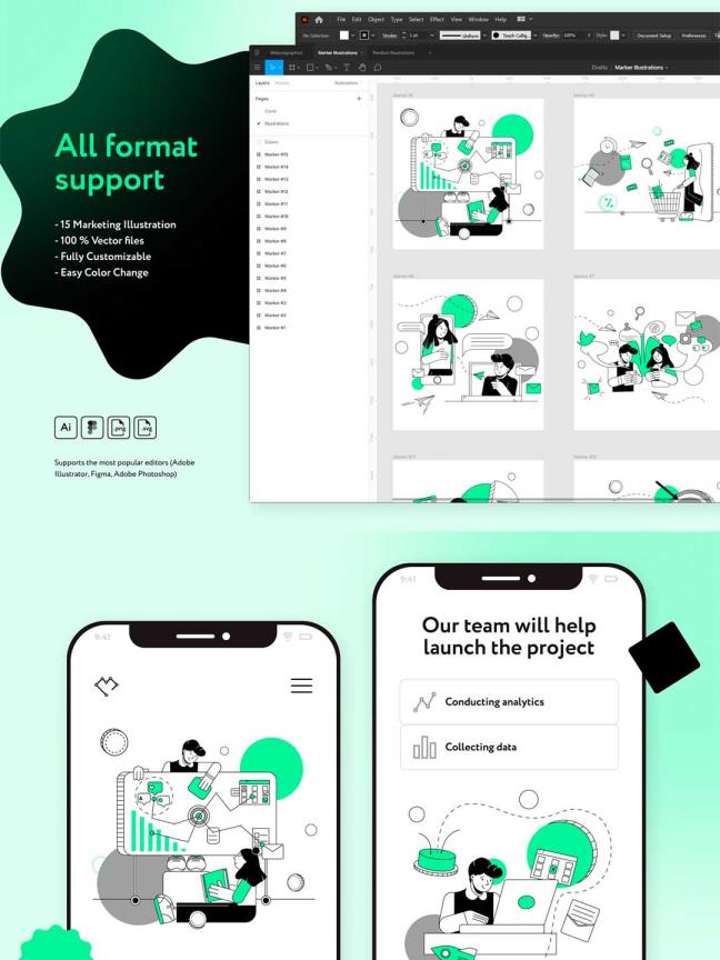 15个互联网运营、互联网营销方向适量插画资源ai源文件