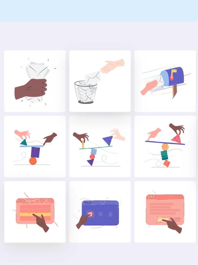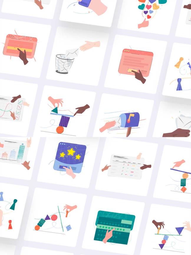 各种手势动作插画套件,矢量插画手势UI源文件下载ai源文件,UI交互手势插画风矢量文件下载