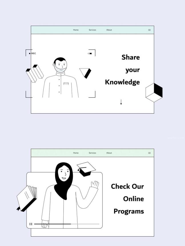 一套简约风黑白线条运营插画素材库,矢量等距黑白线条运营插画组件库