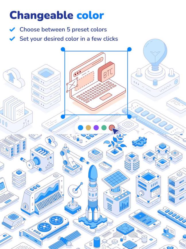 高科技硬件设备线性2.5D插画ai源文件,矢量现代科技设备2.5d插画素材