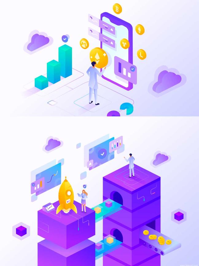 一套2.5D矢量插画运营素材下载,金融方向2.5D插画ai源文件、sketch源文件