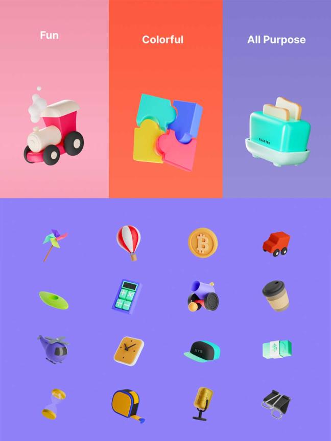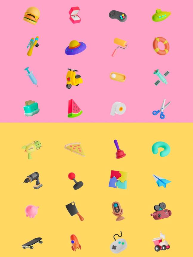 一组时尚元素3D插画素材下载,潮文化元素3D插画资源下载