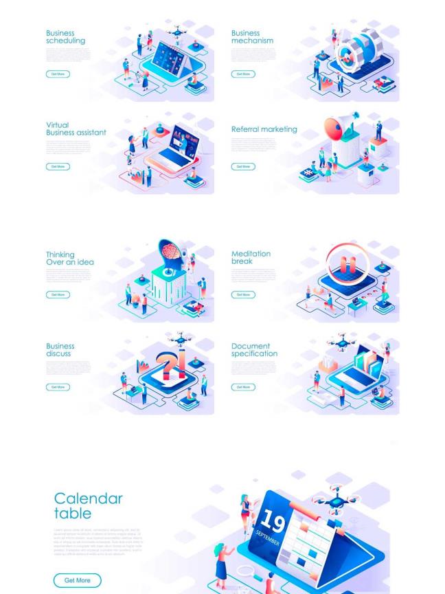 25个2.5D风格场景插画ai源文件,一套矢量2.5d插画原文件下载