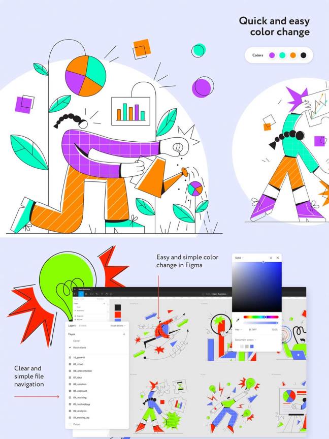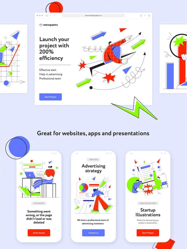 一组现代流行风适用于网页设计、移动app ui设计的适量插画设计ai源文件