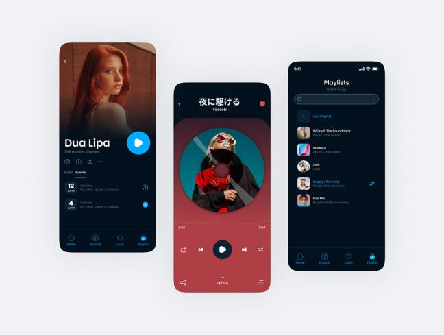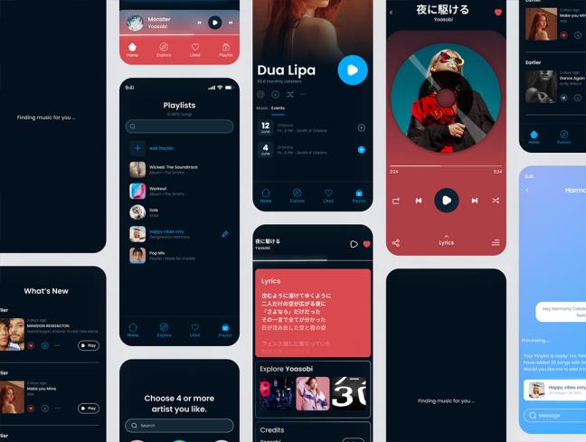 明暗40页高级音乐流媒体APP UI工具包figma源文件